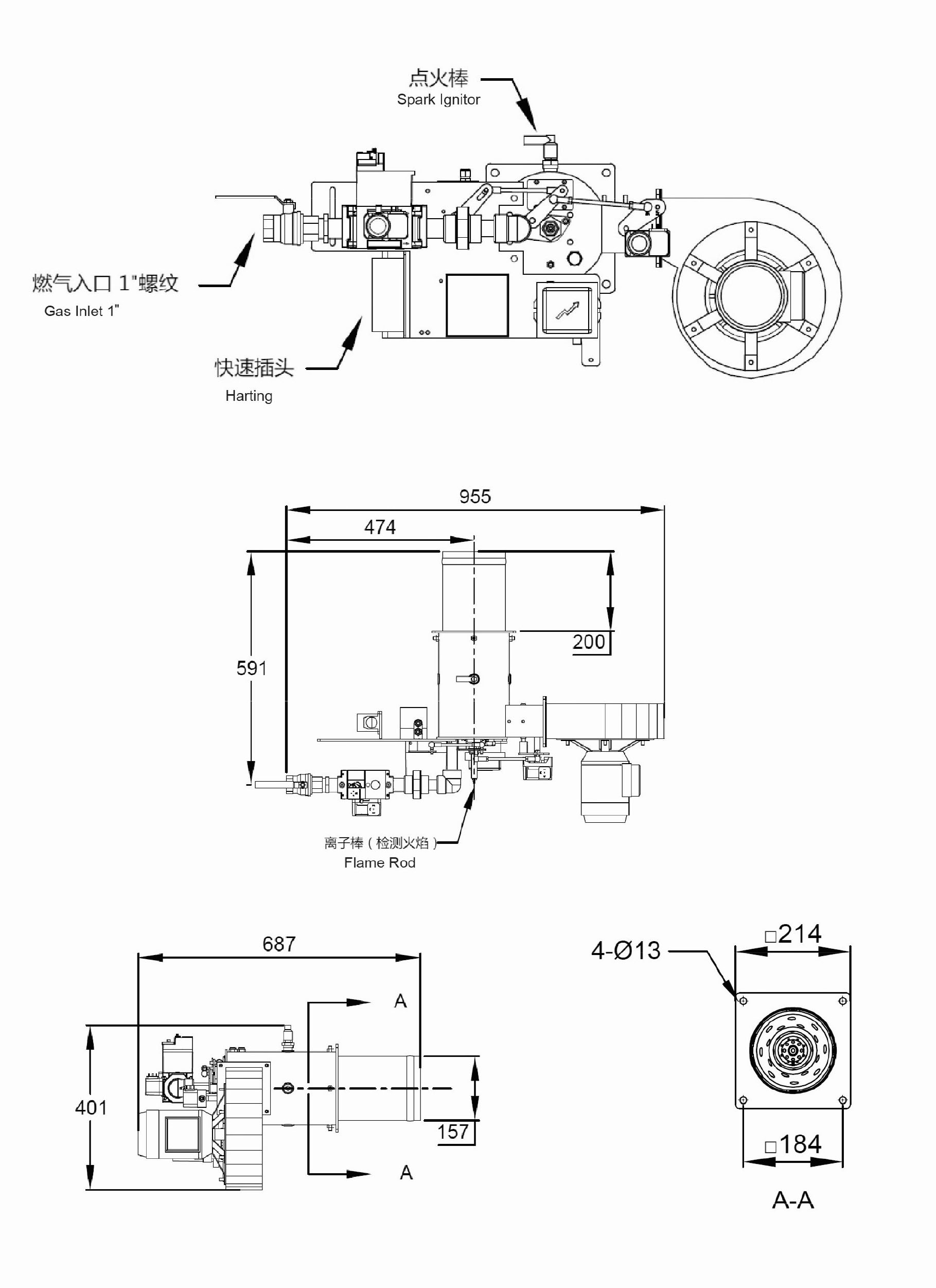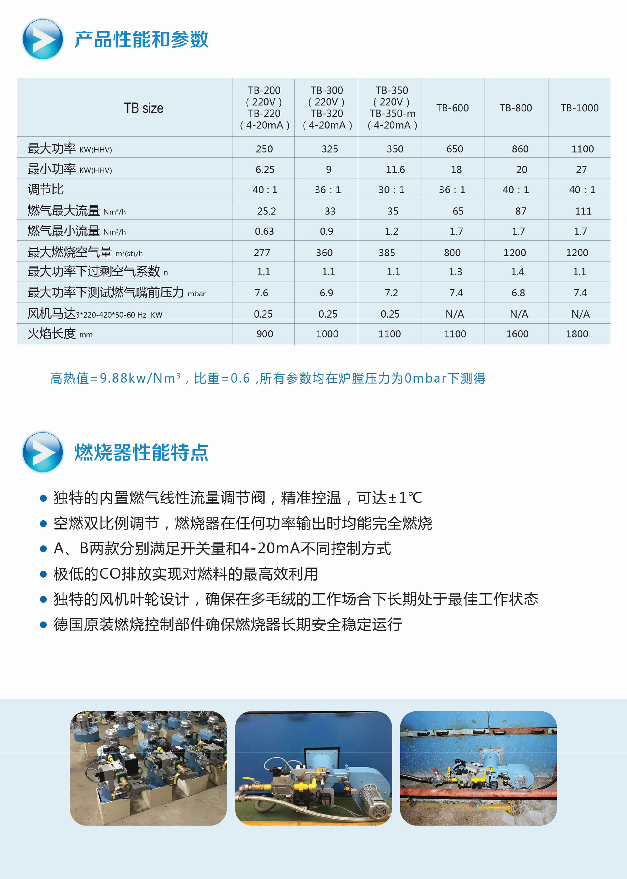 高调节比,调节比为40:1控制方式开关量或模拟量可选功率:250KW-350KW(按高发热量计算)稳定及洁净燃烧火焰检测可选UV或离子棒燃料可选天然气或液化石油气较低的燃气供气压力便捷的安装及维护全金属结构风机电机的电压及频率多款可供选择TB-200具有CE认证(拉幅定型机专用燃烧器)